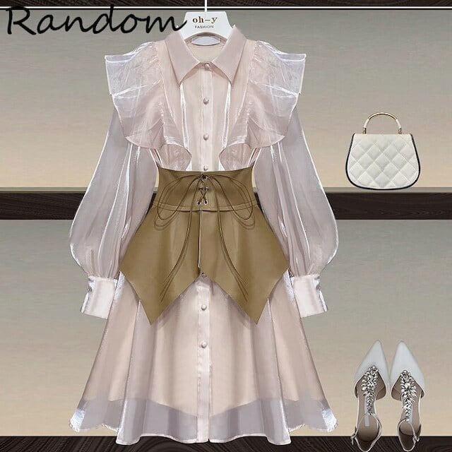 【在庫限り】シースルーウエストベルトワンピースセットアップ(ライトピンク:Lサイズ
