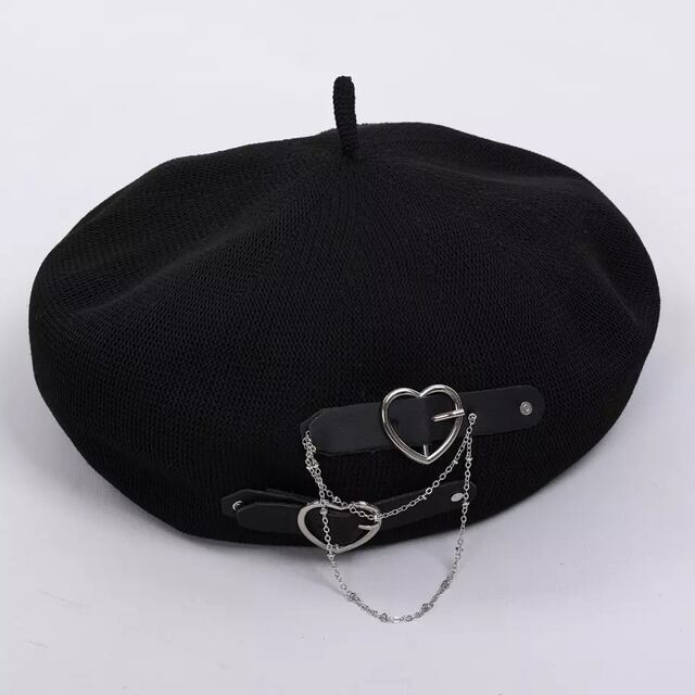 ハートバックルチェーン付きベレー帽