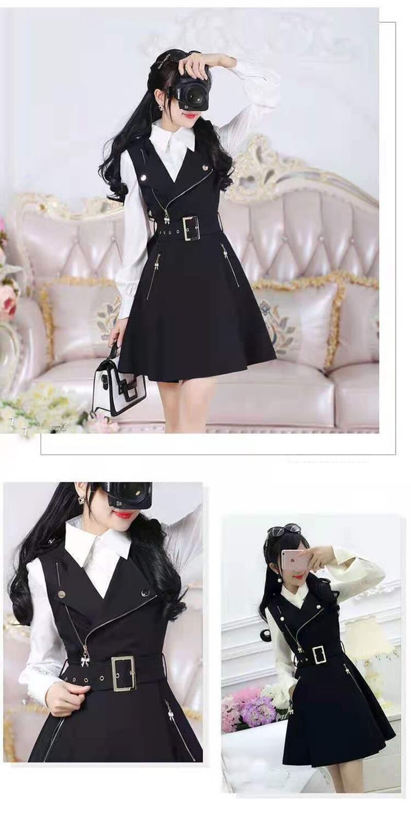 オフィススタイルカジュアルVネックドレスワンピース