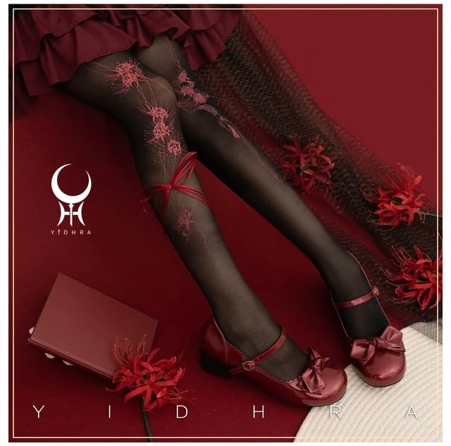 彼岸花プリントリボン付きストッキング