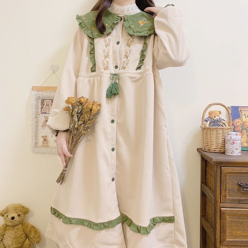 花柄刺繍丸襟ベビードールワンピース