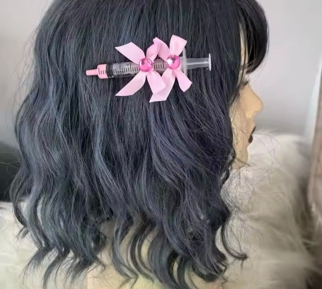 羽付き注射器ヘアクリップ